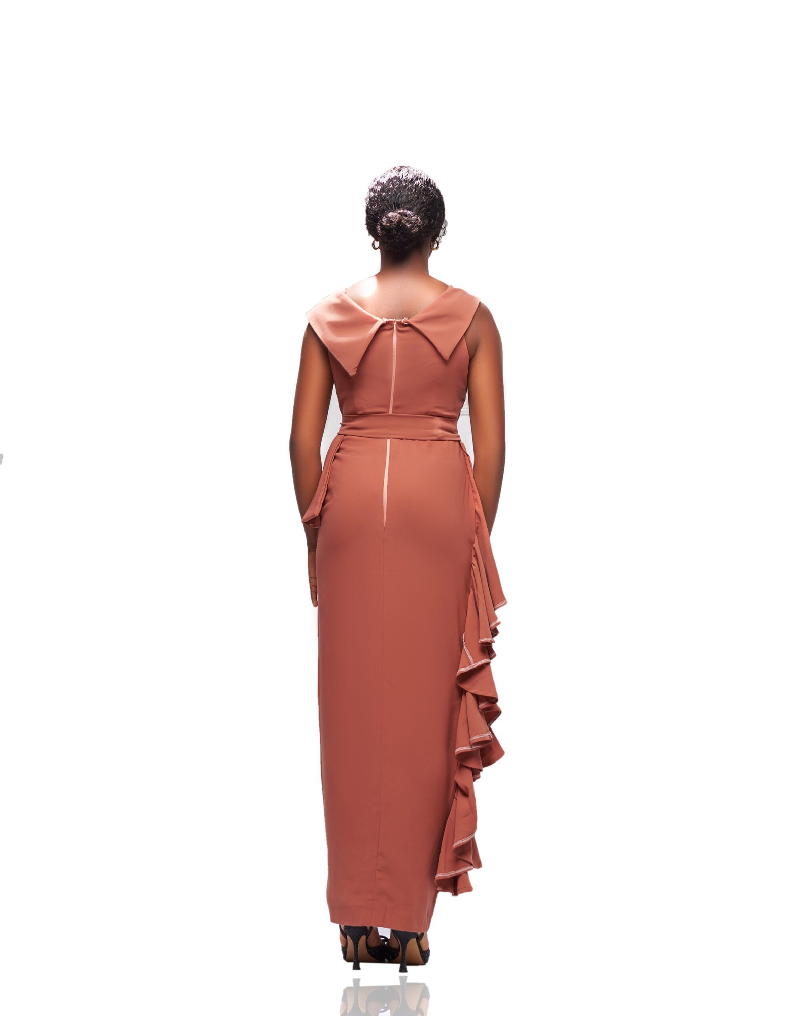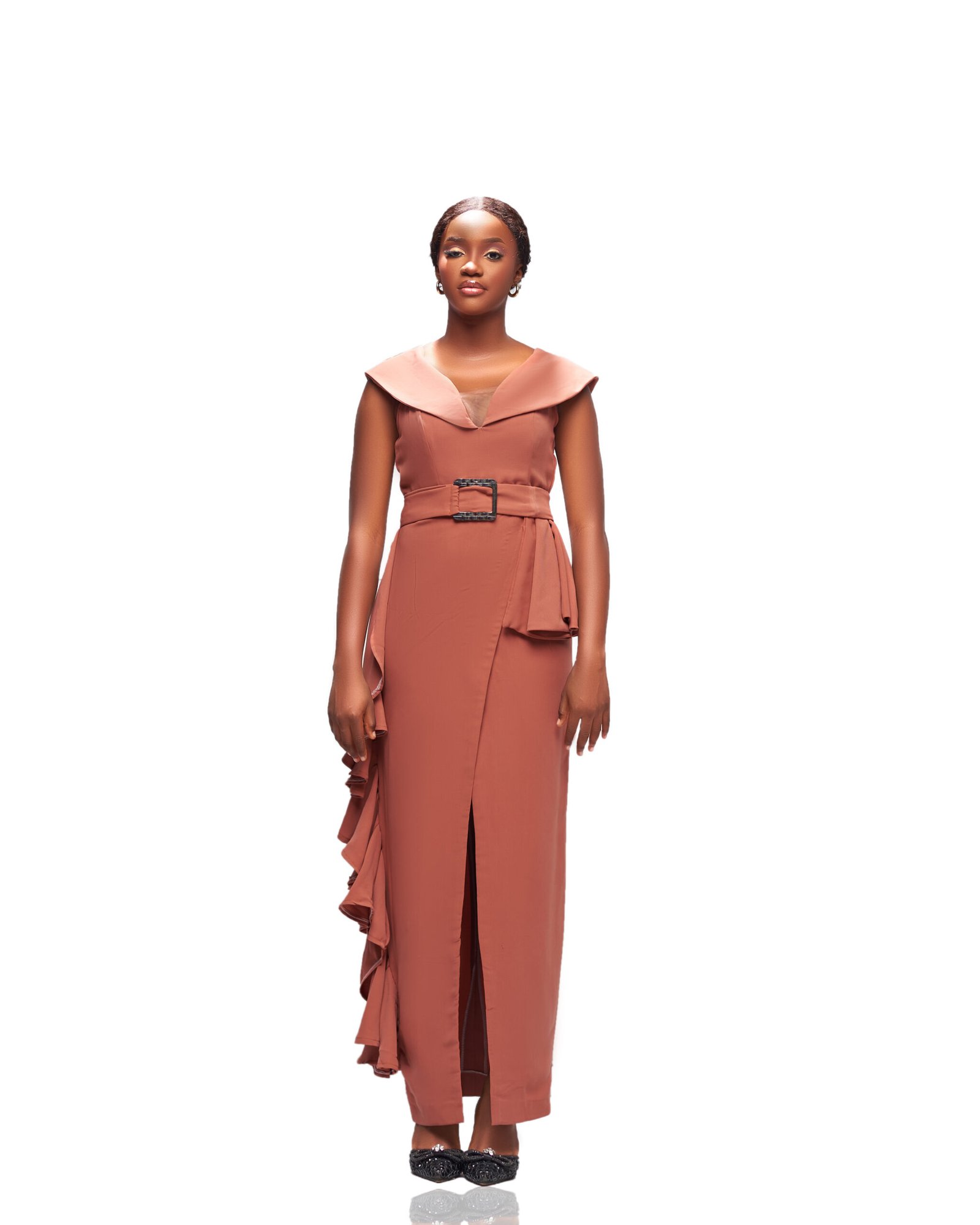 Command attention with understated sophistication in this stunning Terracotta Ruffle Gown, a timeless piece that blends classic elegance with contemporary flair. Perfect for formal events, weddings, or any special occasion, this dress is designed to highlight your figure while delivering graceful movement and refined drama.